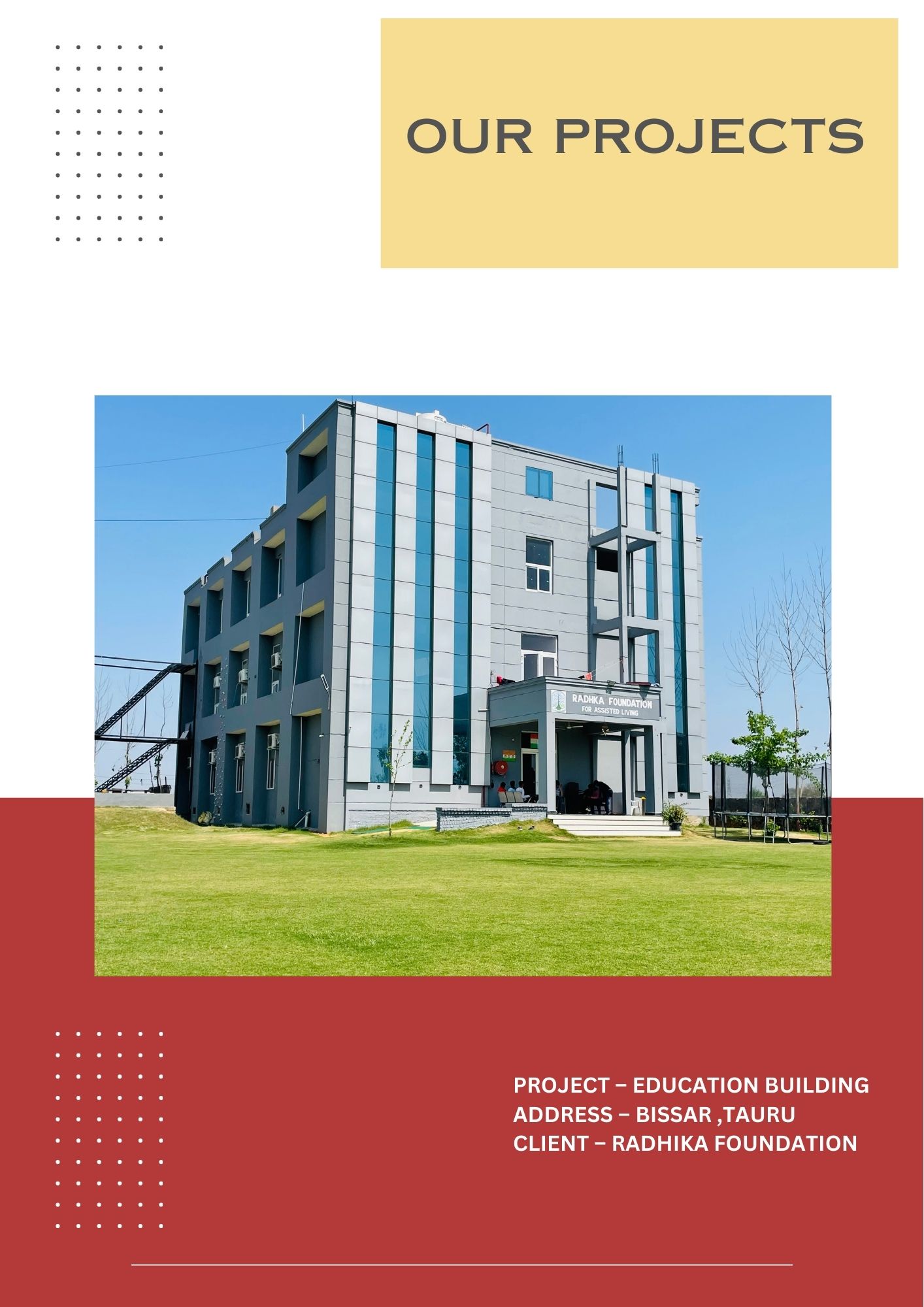 Radhika Foundation Education Building Project इसी सोच का एक उत्कृष्ट उदाहरण है। यह project Bissar, Tauru में स्थित है और इसे विशेष रूप से शिक्षा के आधुनिक मानकों को ध्यान में रखते हुए design और execute किया गया है।